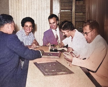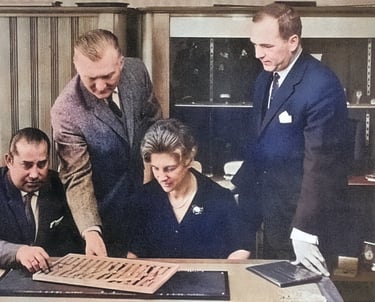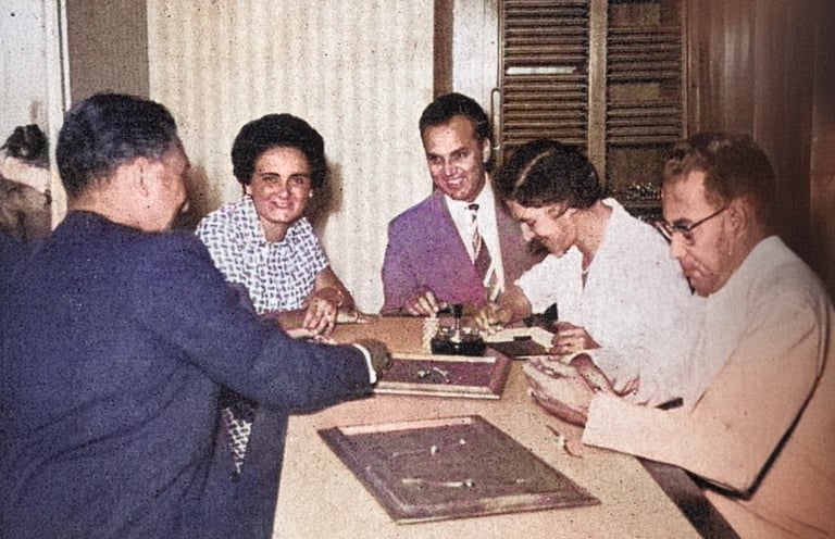 Mr Enrico Mottironi, Mrs Fried, Mr Fredy Zaugg, Mrs Paulette Dreyfus, Mr Fried (Ardath agent for Latin America) 1959, Geneva